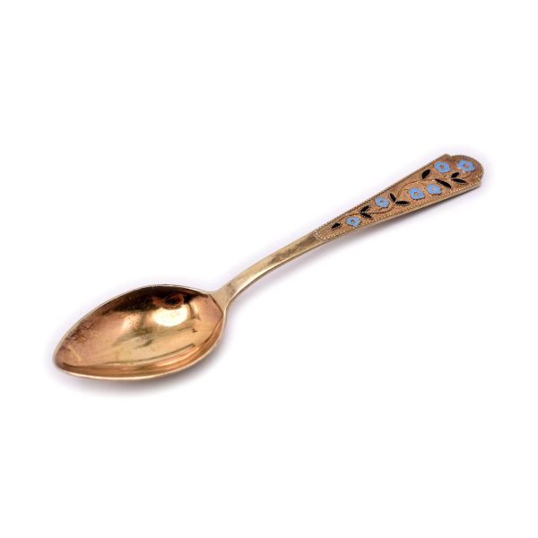 Набор из 6-ти чайных ложек в коробке. Эмаль. Длина 14,5 см. Серебро 875 пробы. 134,66 г (СССР)