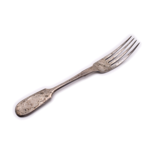 Вилка столовая. Длина 20 см. Серебро 84 пробы. 58,32 г (Российская Империя)