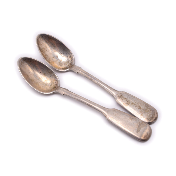Лот чайных ложек. Длина 10,5 см. 2 шт. Серебро 84 пробы. 29,9 г