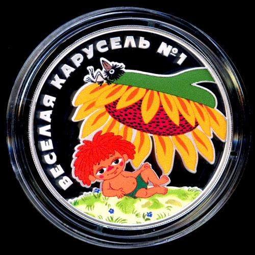 3 рубля — Веселая карусель № 1 (цветная) «Антошка» - В капсуле, с сертификатом. Банковская сохранность монеты 2022 СПМД (Россия)