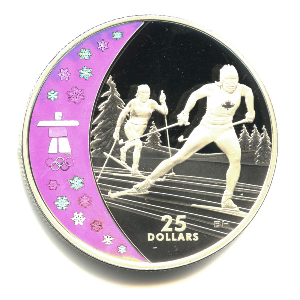 25 долларов — Лыжные гонки. XXI зимние Олимпийские Игры, Ванкувер 2010. (Коллекционная монета) 2009. В капсуле (Канада)