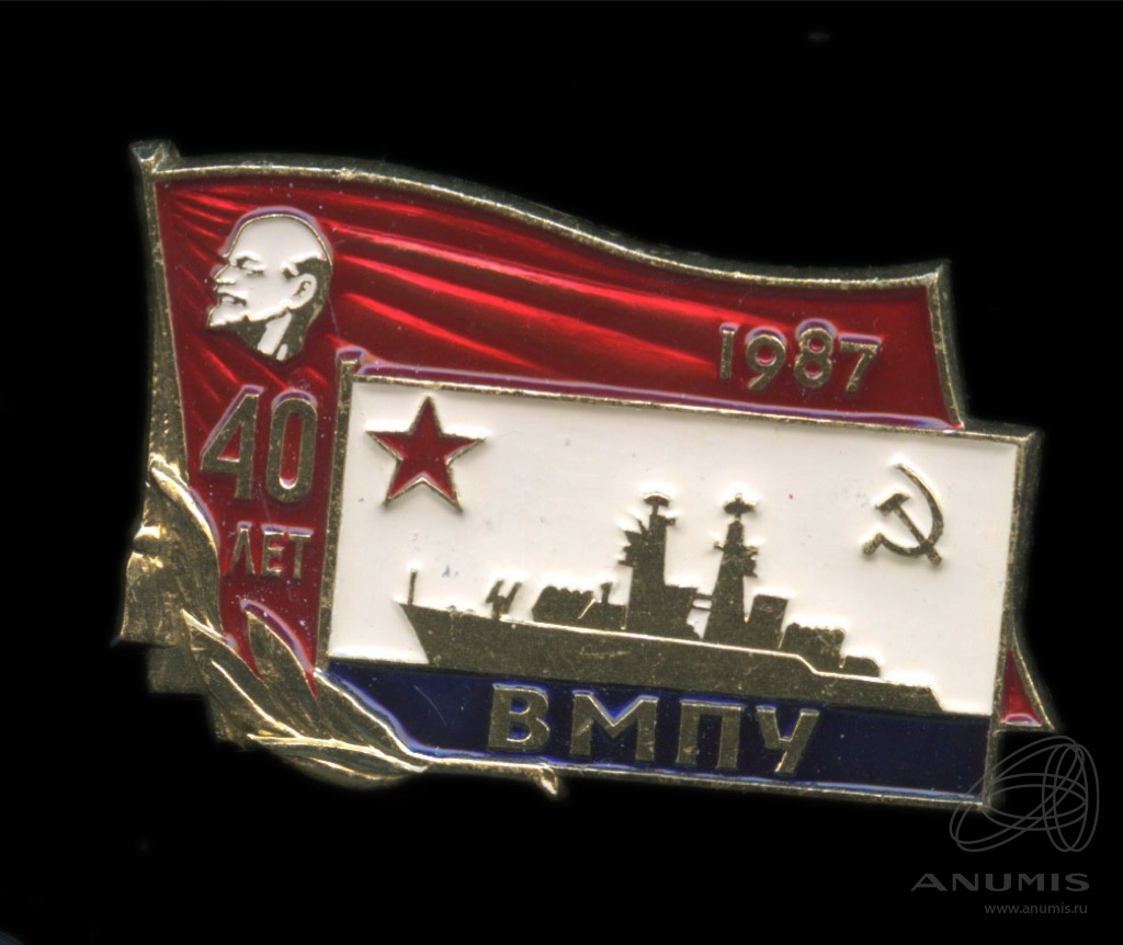 Знак «40 лет ВМПУ». Крепление: булавка. Тяжелый, эмаль