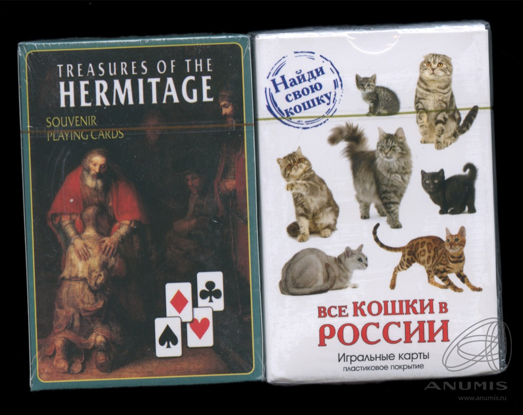 Лот колод игральных карт «Сокровища Эрмитажа», «Все кошки в России». 2 шт
